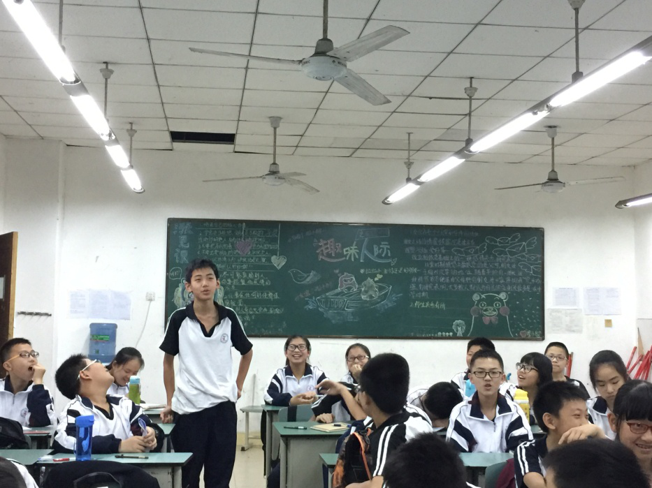 初一17班心理委员陈昊和他与心理委员李妍宏设计的心理黑板报
